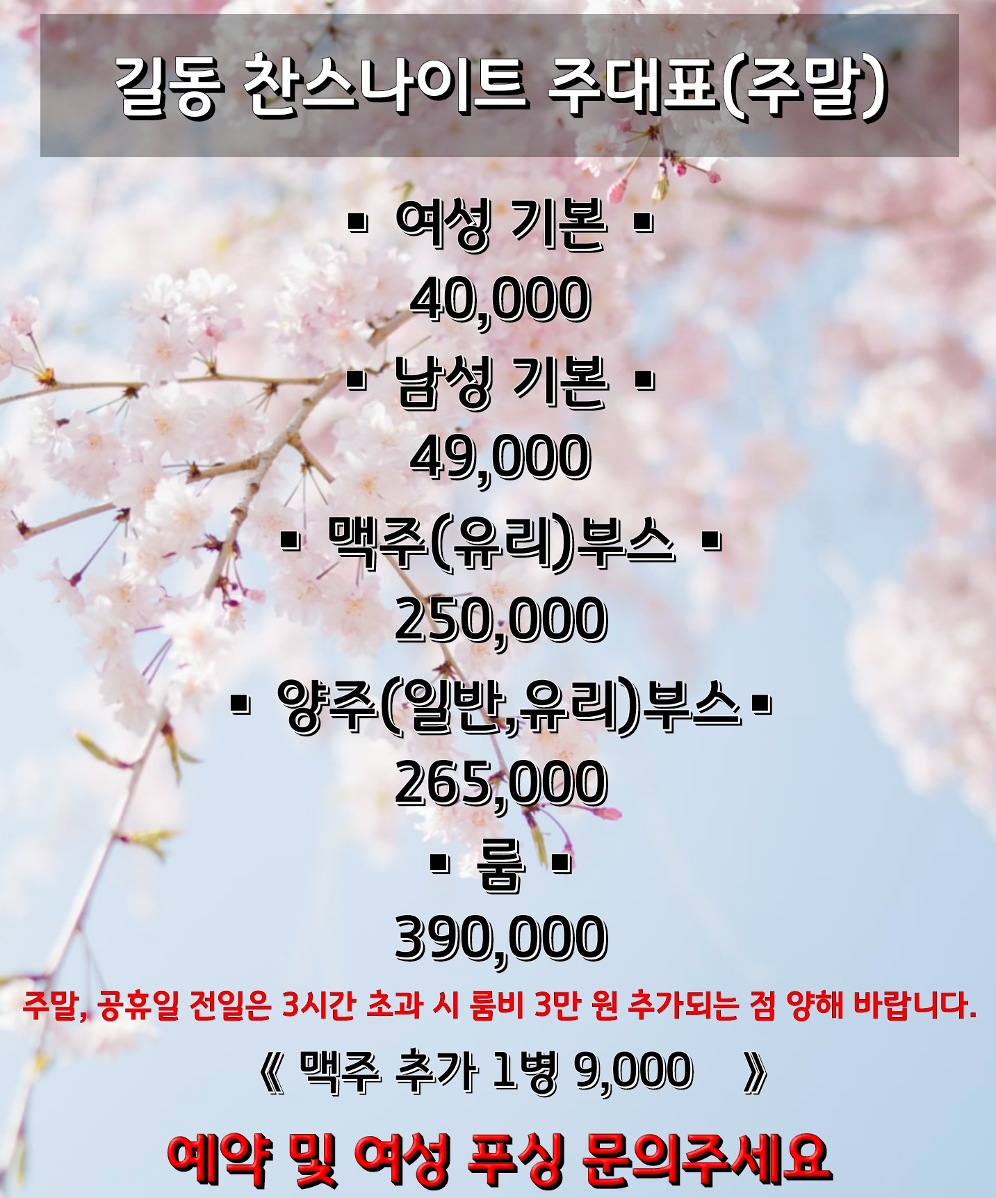 안녕하세요.강동구 부킹명당! 합석 명당!길동 찬스 나이트 로또입니다. 2024년 길동 사거리 찬스나이트에 대해서 알려 드립니다.안녕하세요.길동 찬스나이트 로또입니다.아래 사진을 클릭하시