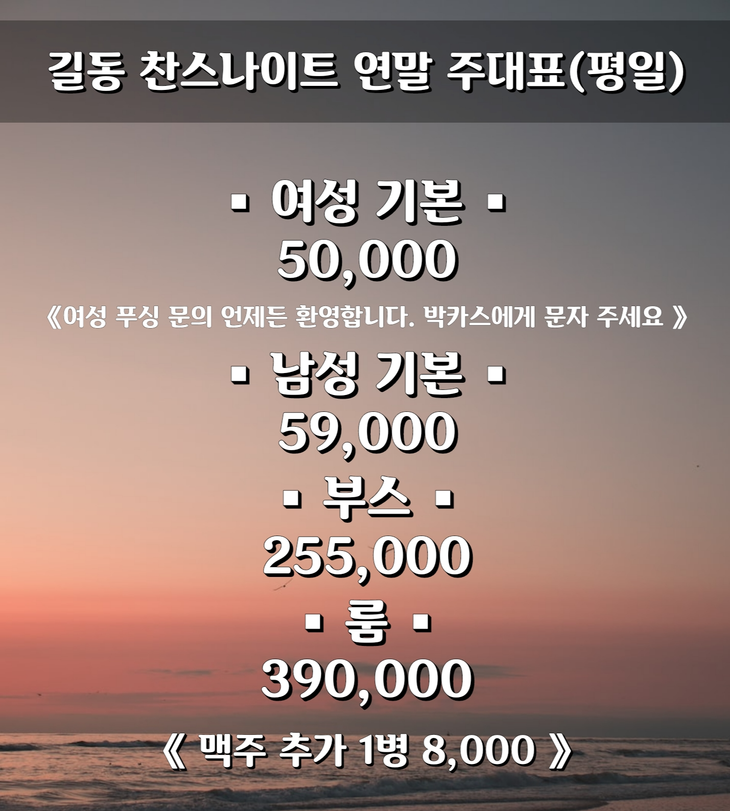 길동 찬스나이트 연말 가격입니다.(2023.12.01)